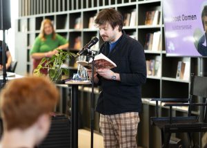 Het programma werd geopend door een prachtige voordracht van Hannan van Rooij, dit jaar huisdichter van Rijksuniversiteit Groningen. Onder muzikale begeleiding van cellist Sebastiaan Wiering, dichtte Hannan de natuur van het noorden toe: “Ik wilde met het duingras praten.” Hierna werd de volle zaal meegenomen in het dagprogramma door schrijver en moderator Kirsten van Santen: “We gaan vandaag de literatuur in vliegen, en jullie hebben de hoofdrol!”
